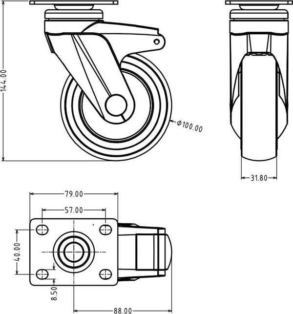 單/雙全塑腳輪